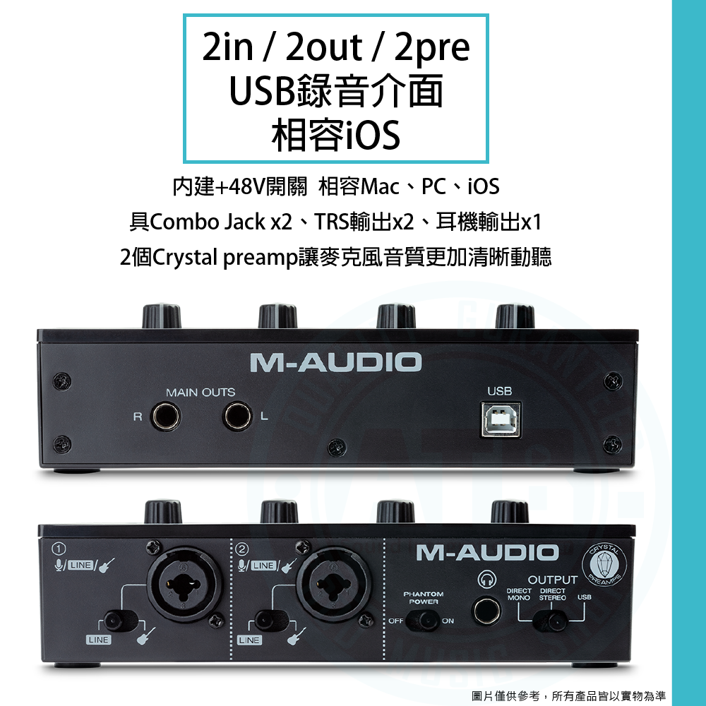 ◆ 2 In / 2 Out / 2 Pre,USB錄音介面