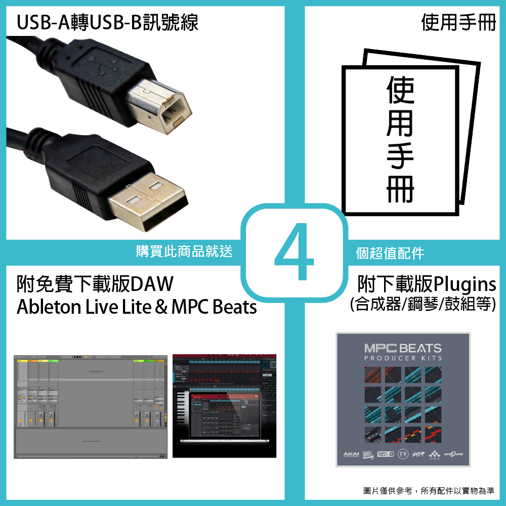 ◆ 附Ableton Live Lite、MPC Beats軟體、多項Plugins