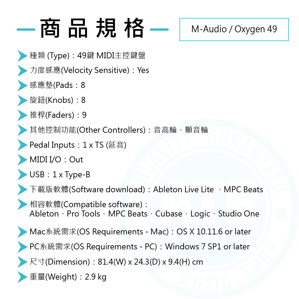 ◆ 附Ableton Live Lite、MPC Beats軟體、多項Plugins