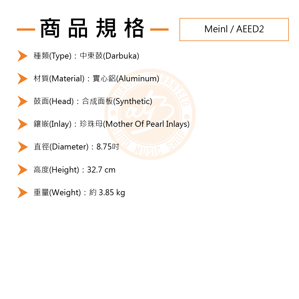 ◆ 埃及製造,實心鋁桶身,高音清脆、低音厚實
