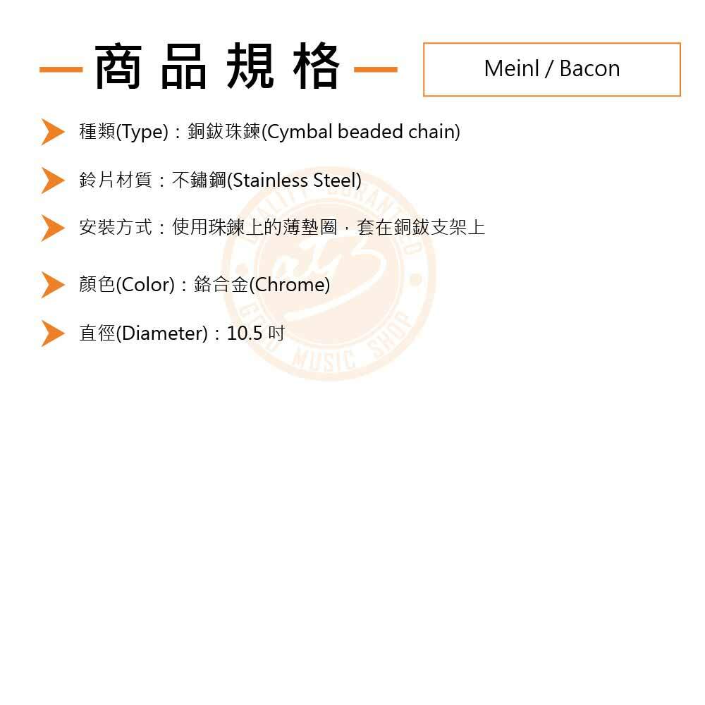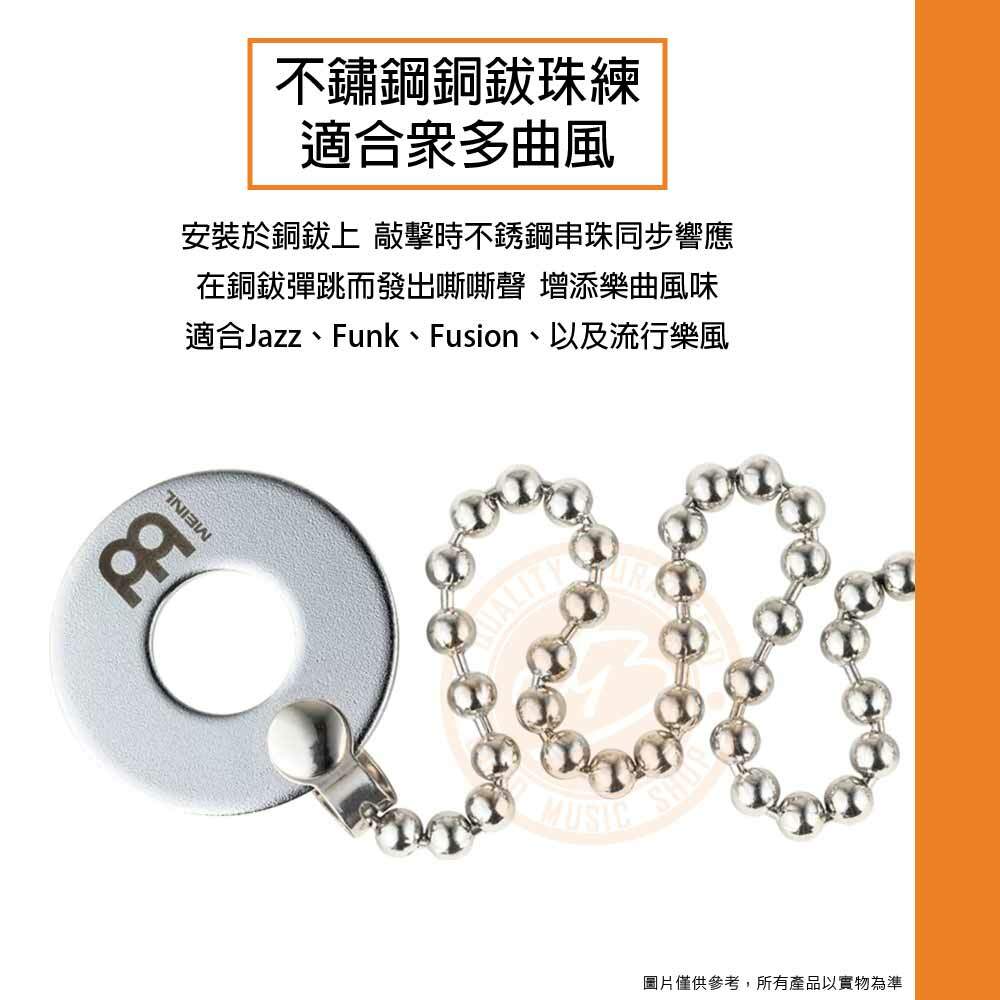 ◆ 不鏽鋼銅鈸珠鍊,敲擊時與銅鈸同步響應,因串出彈跳而發出嘶嘶聲