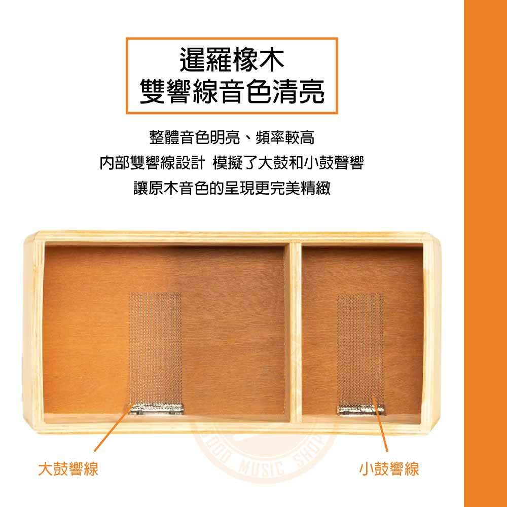 ◆ 暹羅橡木材質、正面響孔設計,可放在膝上演奏