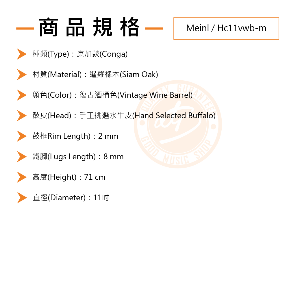 ◆ 手工挑選水牛皮鼓面、暹羅橡木桶身,高音圓潤、低音溫暖