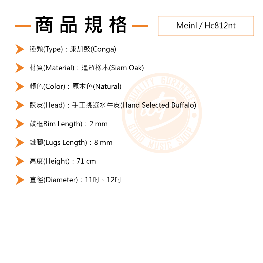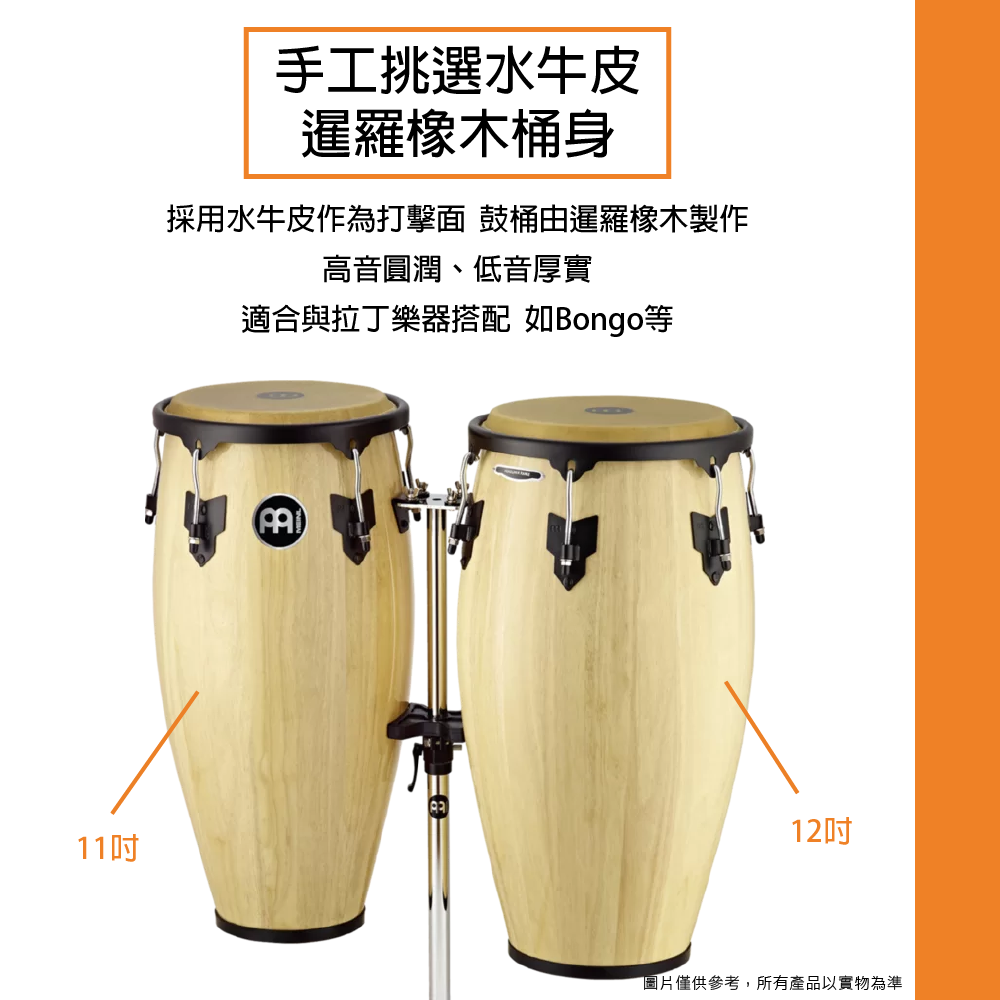 ◆ 手工挑選水牛皮鼓面、暹羅橡木桶身,高音圓潤、低音溫暖