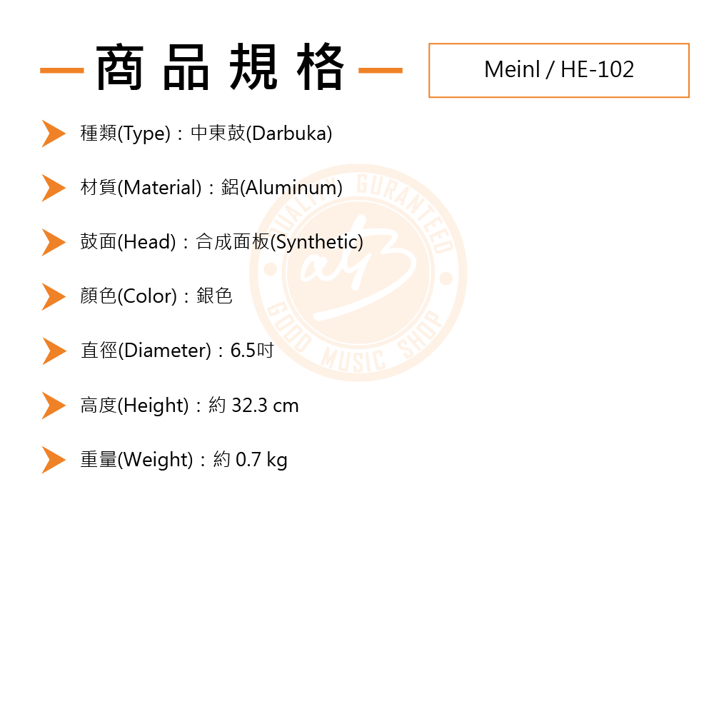Meinl / HE-102 6.5吋鋁製中東鼓