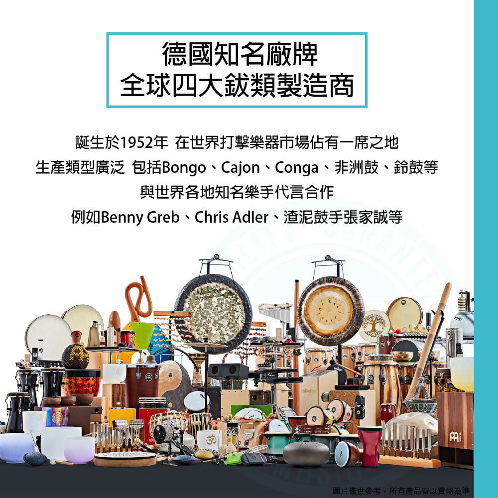 ◆ 德國知名廠商Meinl,全球四大鈸類製造商,知名樂手Benny Greb、Chris Adler、渣泥鼓手張家誠代言