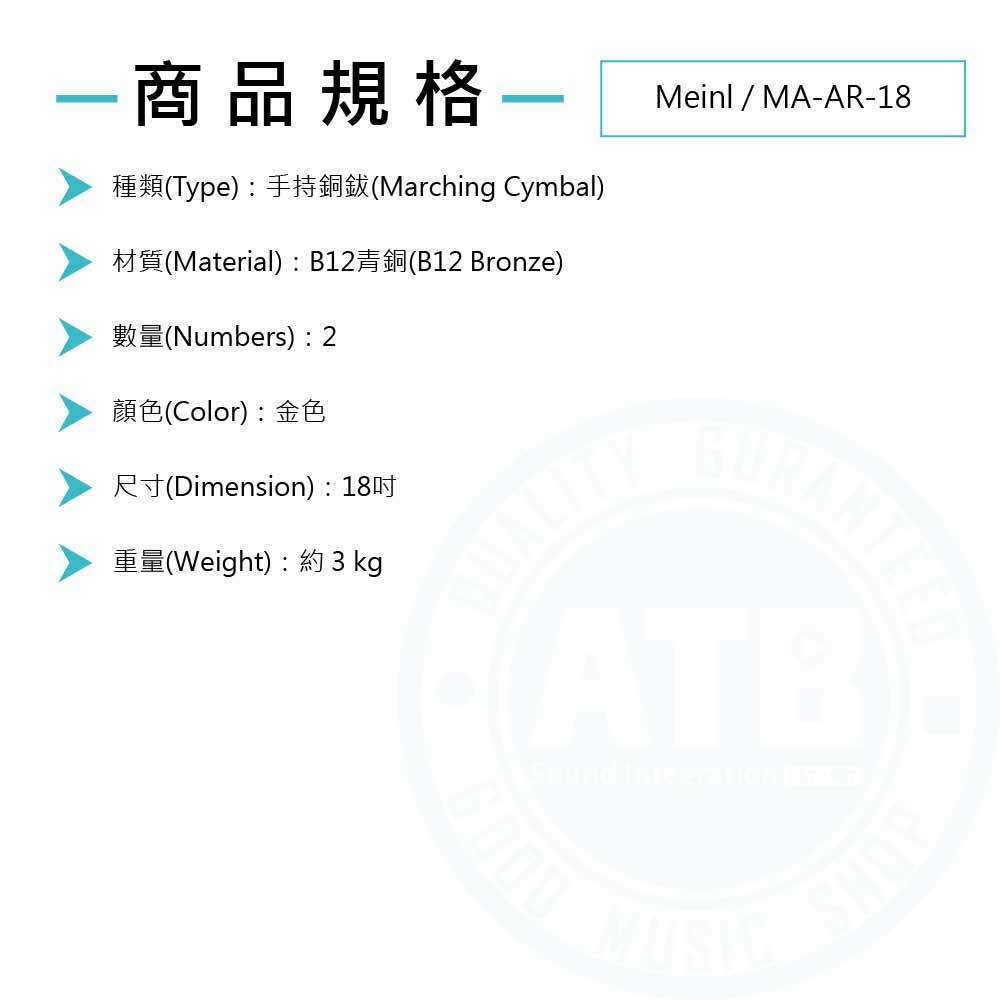 ◆ 18吋手持銅鈸,B12青銅製成、擁有優良共振