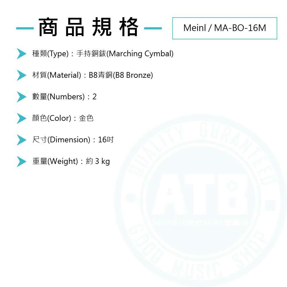 ◆ 16吋手持銅鈸,B8青銅製成、擁有優良共振