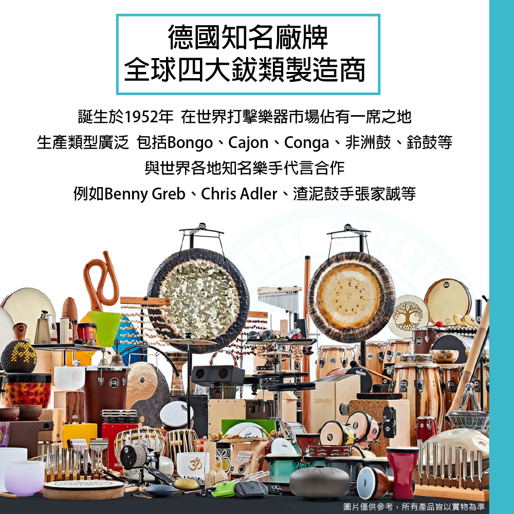 ◆ 德國知名廠商Meinl,全球四大鈸類製造商,知名樂手Benny Greb、Chris Adler、渣泥鼓手張家誠代言