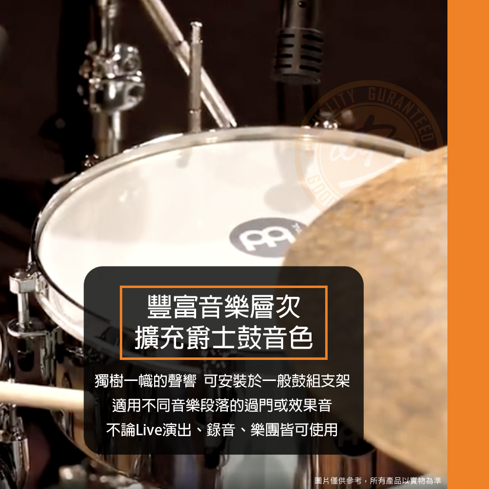 ◆ 可裝於一般鼓組支架,擴充爵士鼓音色