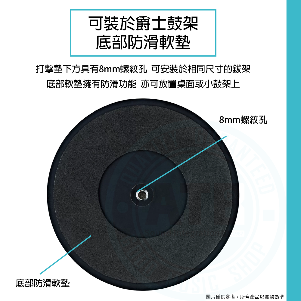 ◆ 底部8mm螺紋孔、防滑軟墊設計,可裝於爵士鼓架