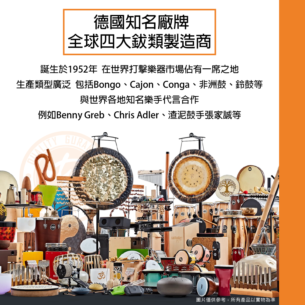 ◆ 德國知名廠商Meinl,全球四大鈸類製造商,知名樂手Benny Greb、Chris Adler、渣泥鼓手張家誠代言