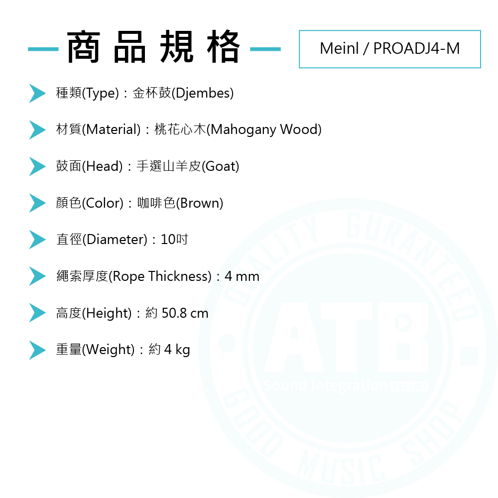 ◆ 10吋金杯鼓,手選山羊皮鼓面、桃花心木桶身