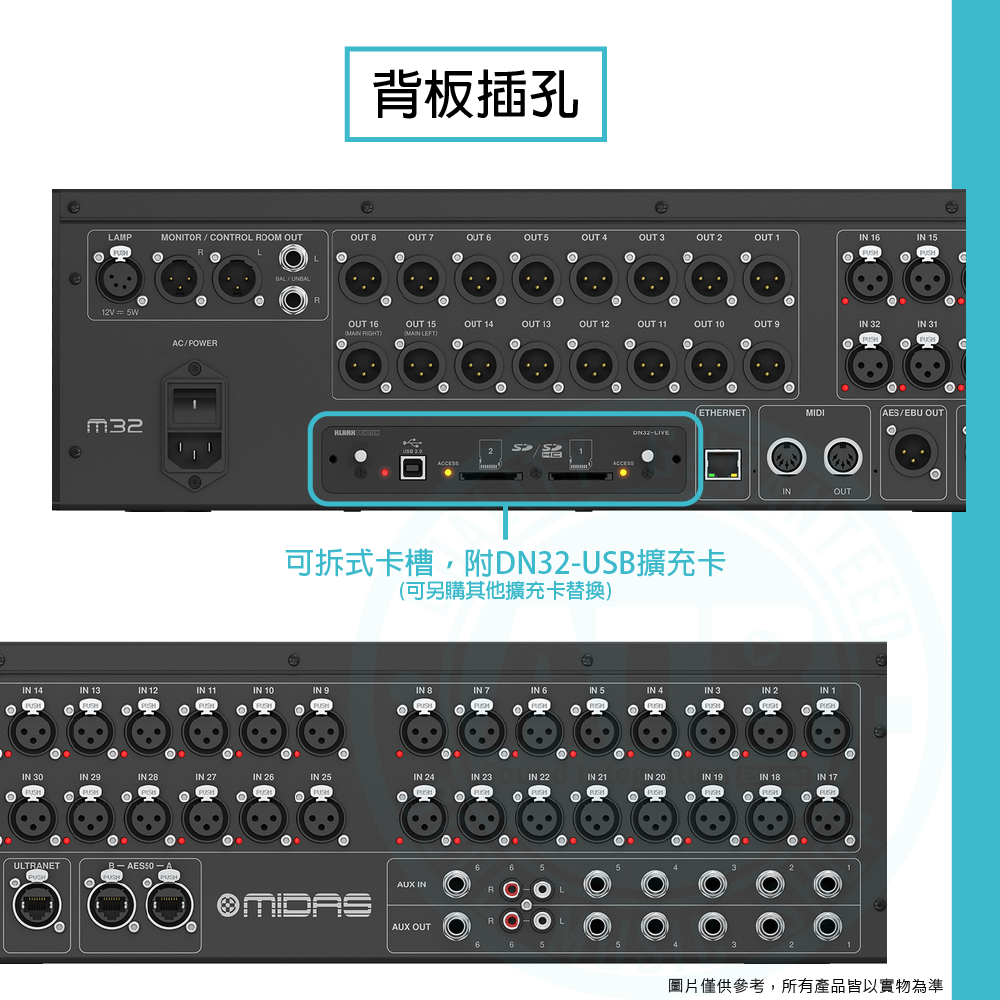 ◆ 內建32In / 32Out USB錄音介面,具專屬App遠端控制