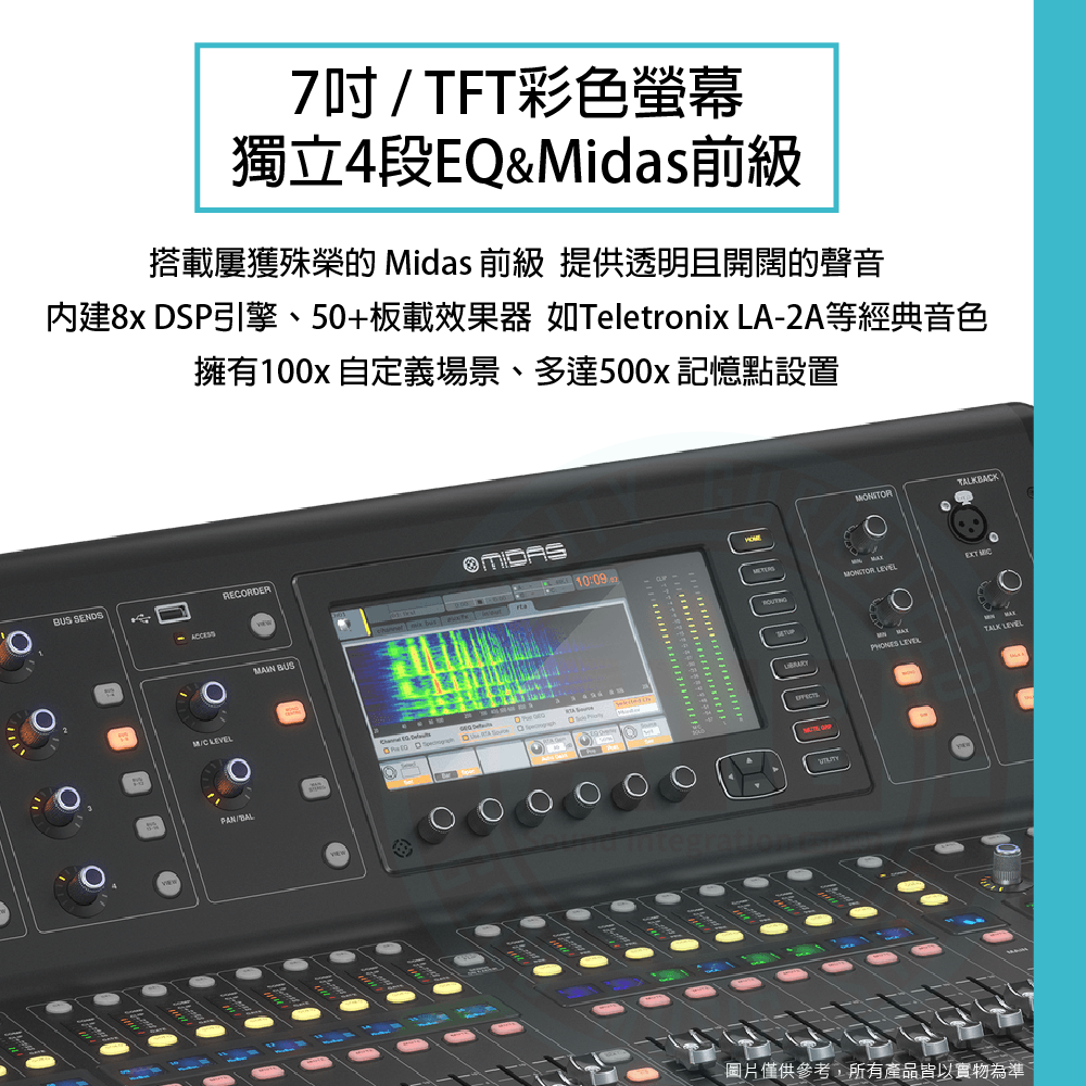 ◆ 搭載7吋TFT彩色螢幕,獨立4段EQ&Midas前級