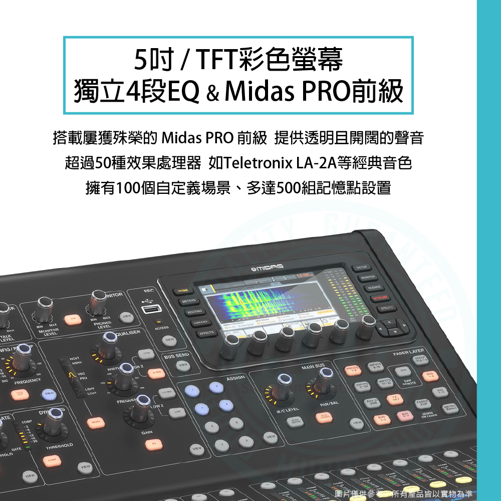 ◆ 搭載5吋TFT彩色螢幕,獨立4段EQ&Midas前級