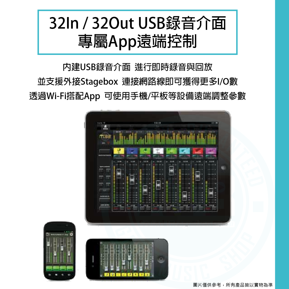 ◆ 內建32In / 32Out USB錄音介面,具專屬App遠端控制