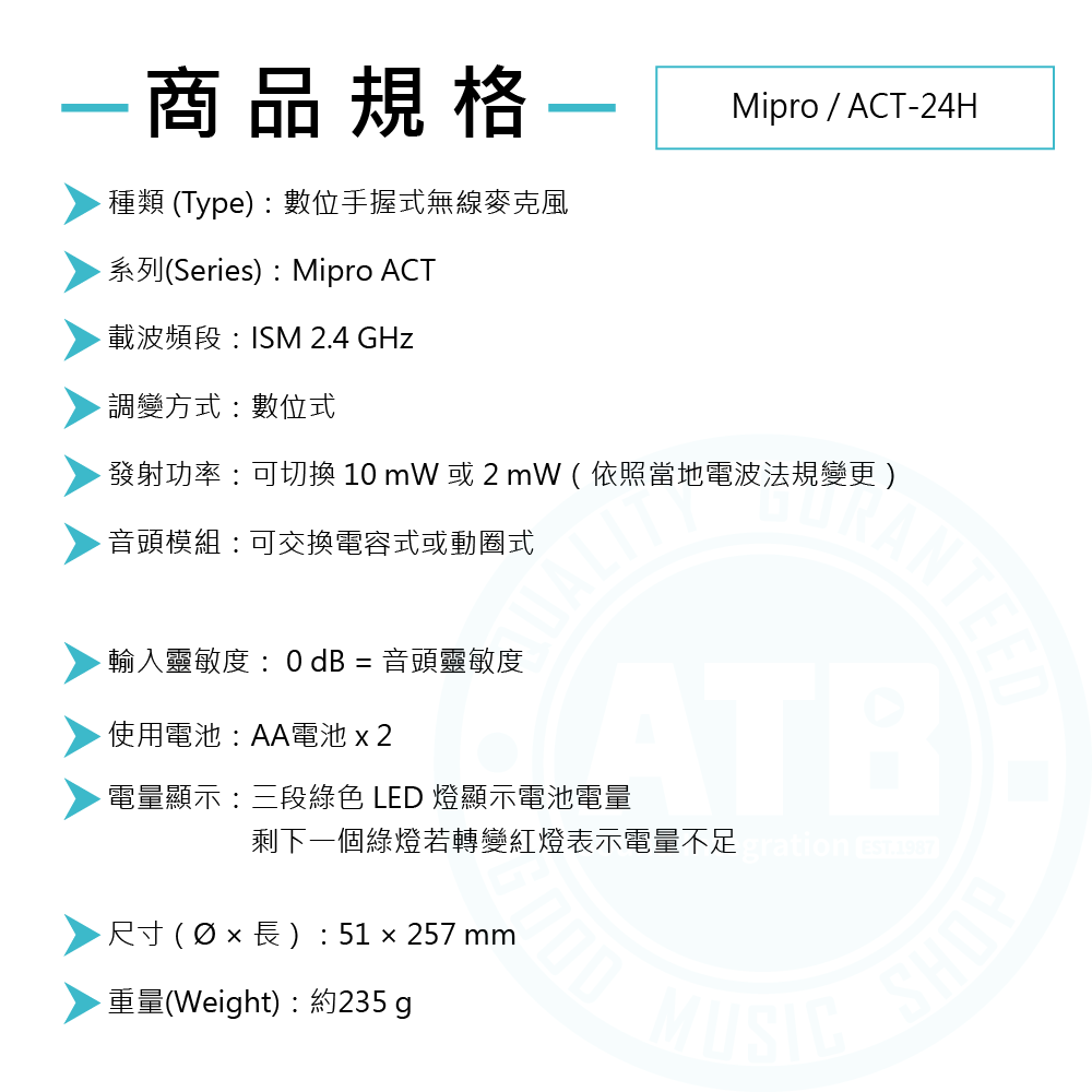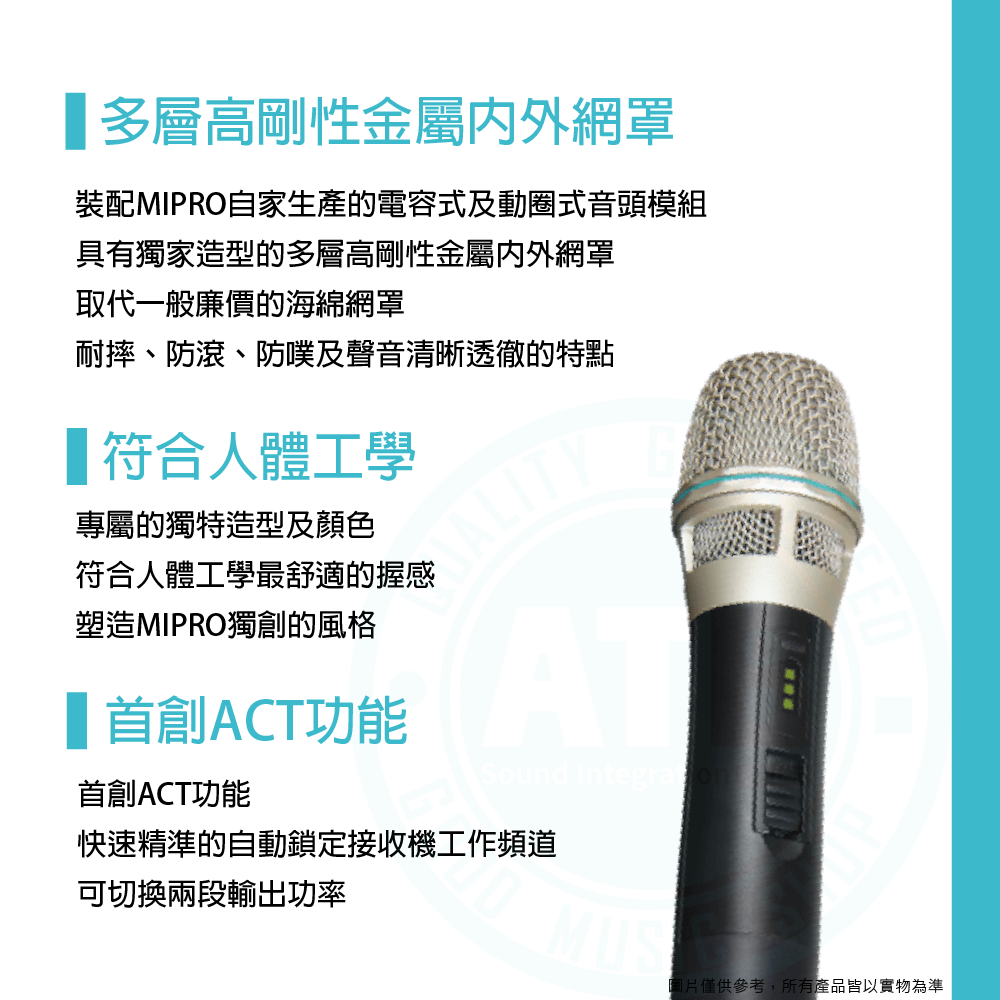 ◆裝配MIPRO擁有專利音頭懸吊設計的電容式或動圈式音頭模組