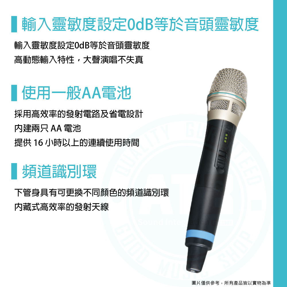 ◆下管身具有可更換不同顏色的頻道識別環,內藏式高效率的發射天線