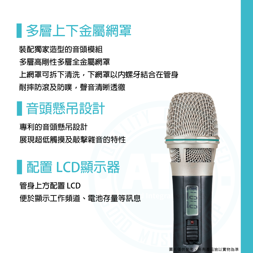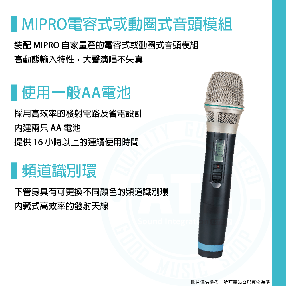 ◆裝配MIPRO擁有專利音頭懸吊設計的電容式或動圈式音頭模組