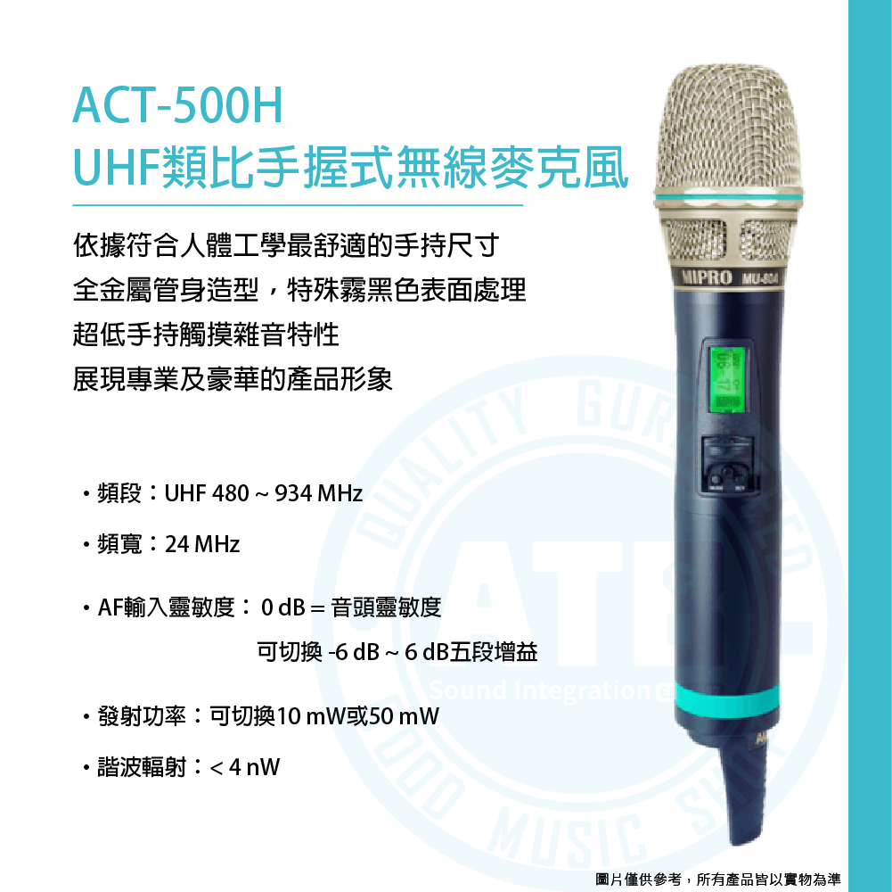 ◆標配ACT-500H手握式麥克風或ACT-500T佩戴式發射器