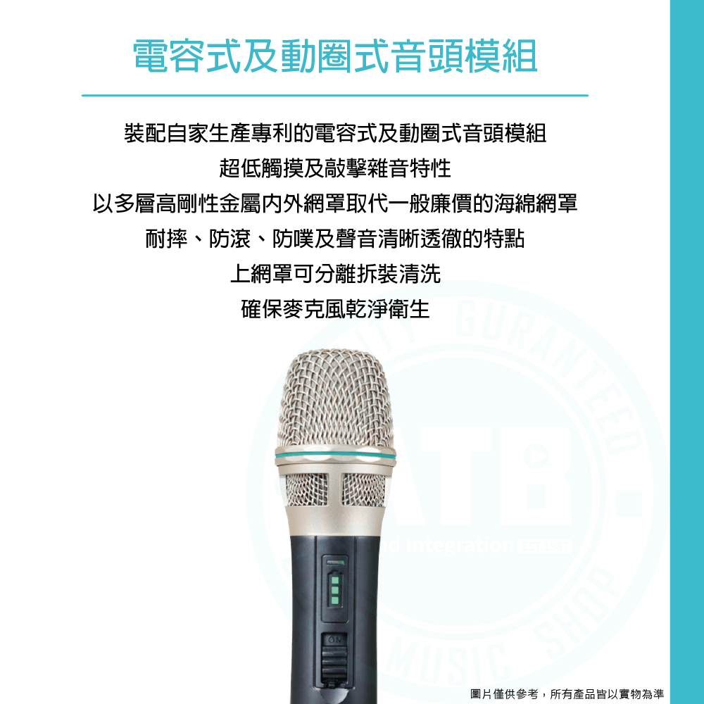 ◆裝配MIPRO擁有專利音頭懸吊設計的電容式或動圈式音頭模組