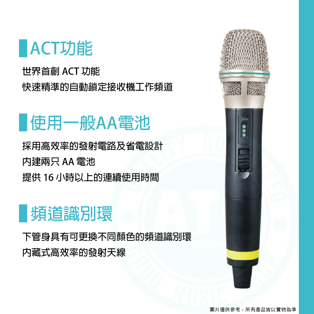 ◆下管身具有可更換不同顏色的頻道識別環,內藏式高效率的發射天線