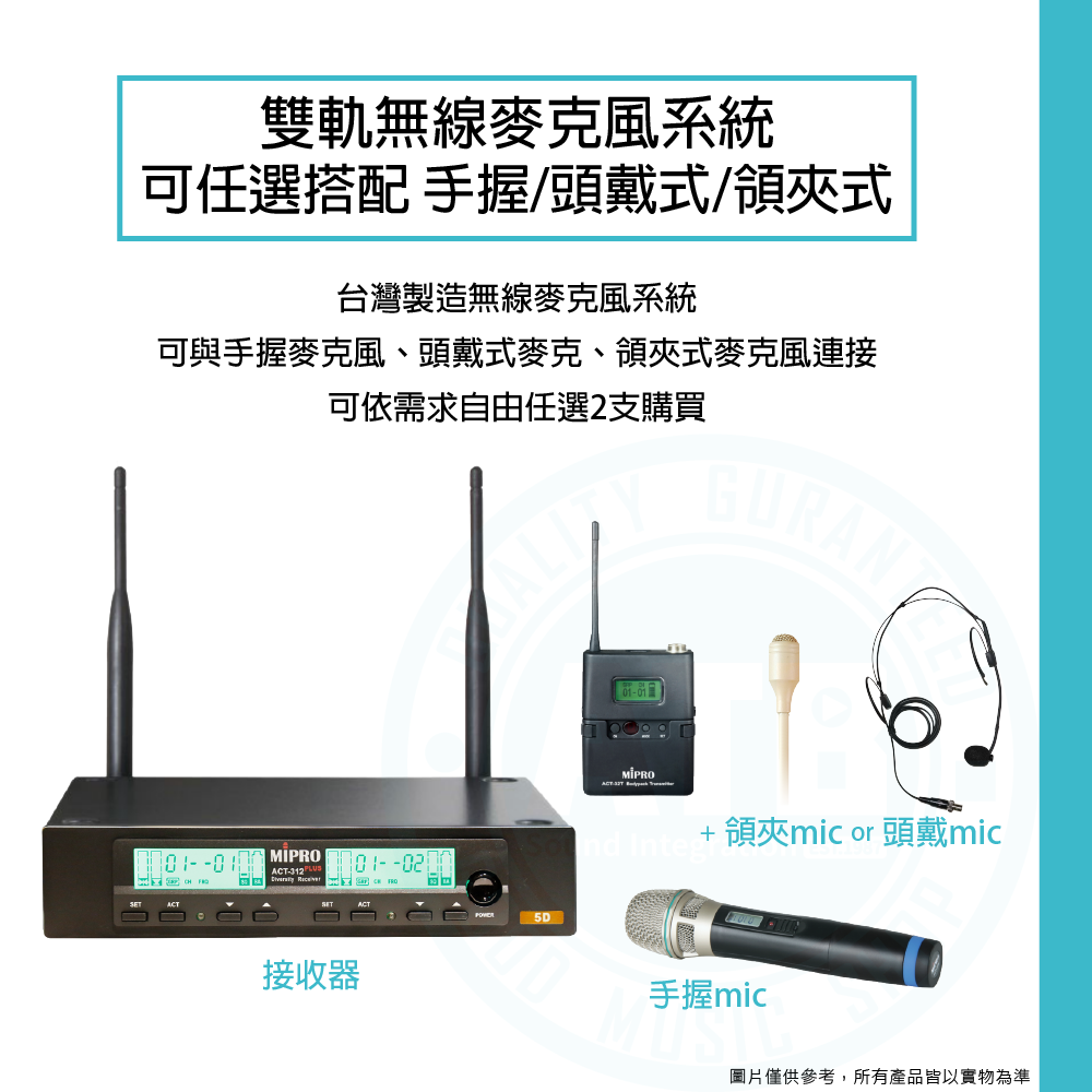 ◆ 雙軌無線麥克風系統,可任選搭配手握麥克風/頭戴麥克風/領夾麥克風