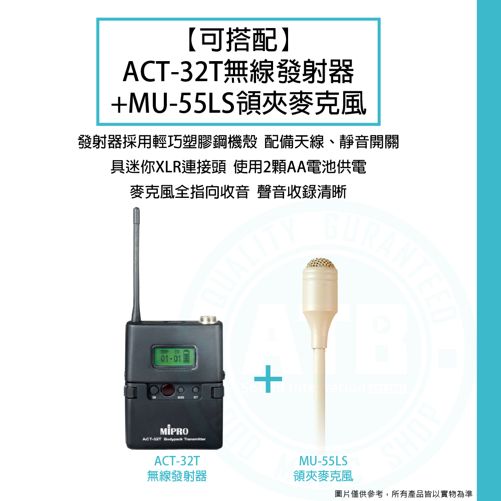 ◆ 領夾式:ACT-32T無線發射器+MU-55LS領夾麥克風