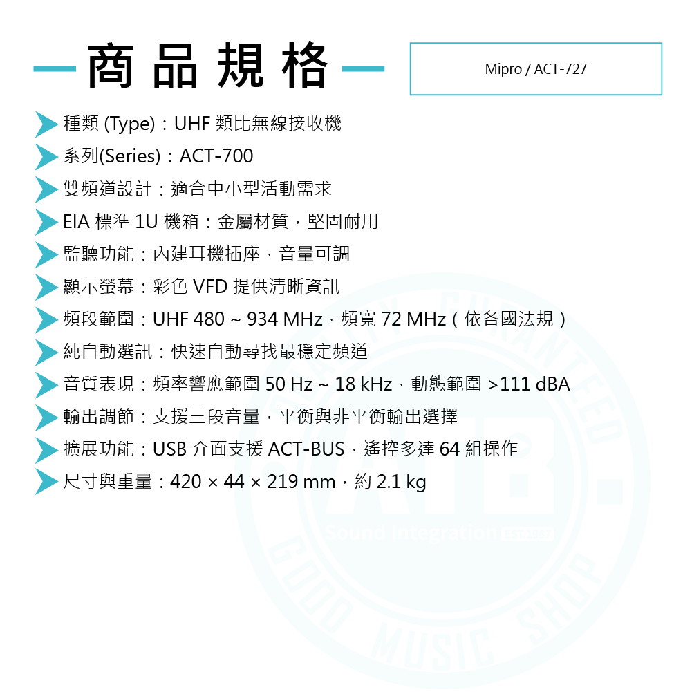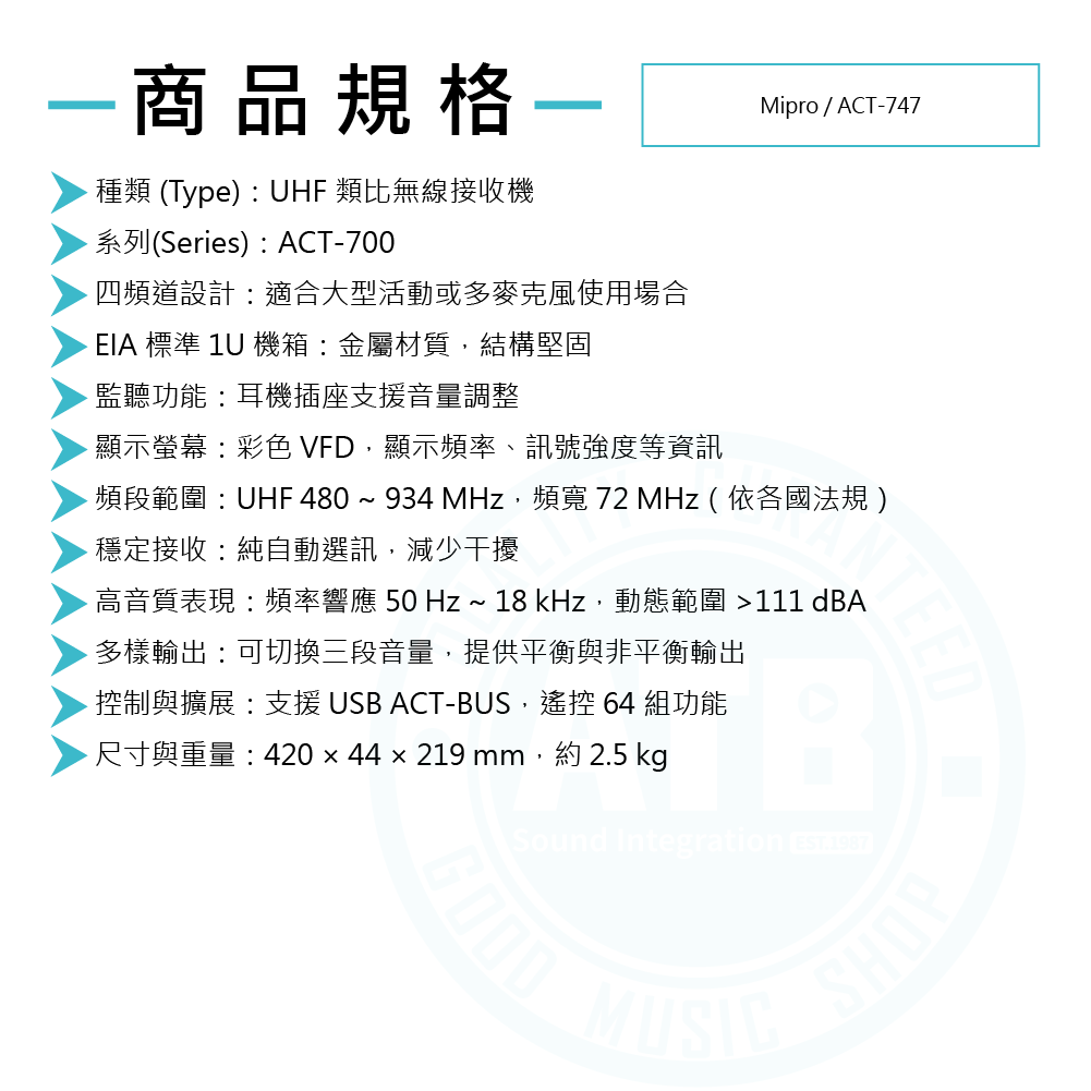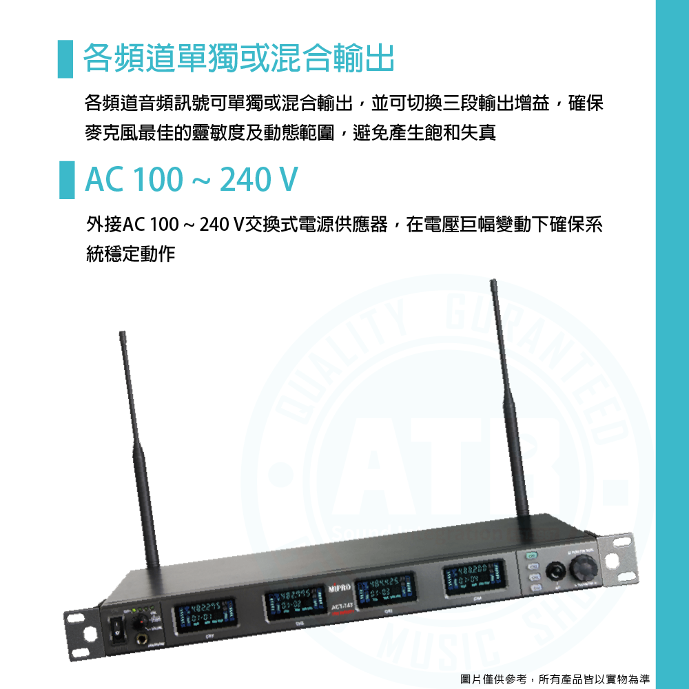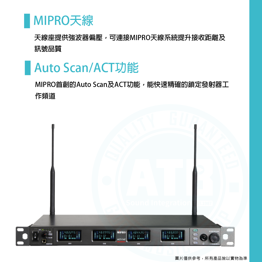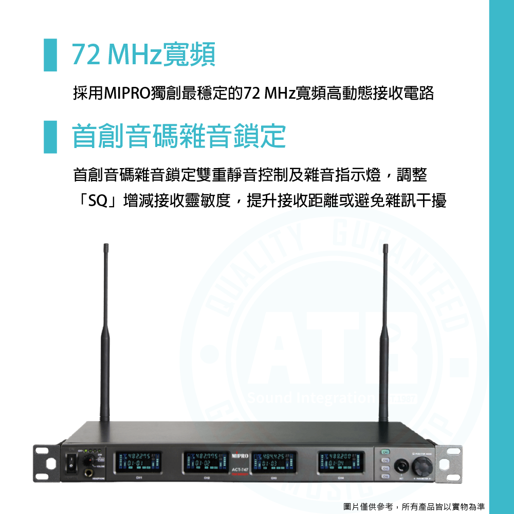 ◆採用MIPRO獨創最穩定的72 MHz寬頻高動態接收電路