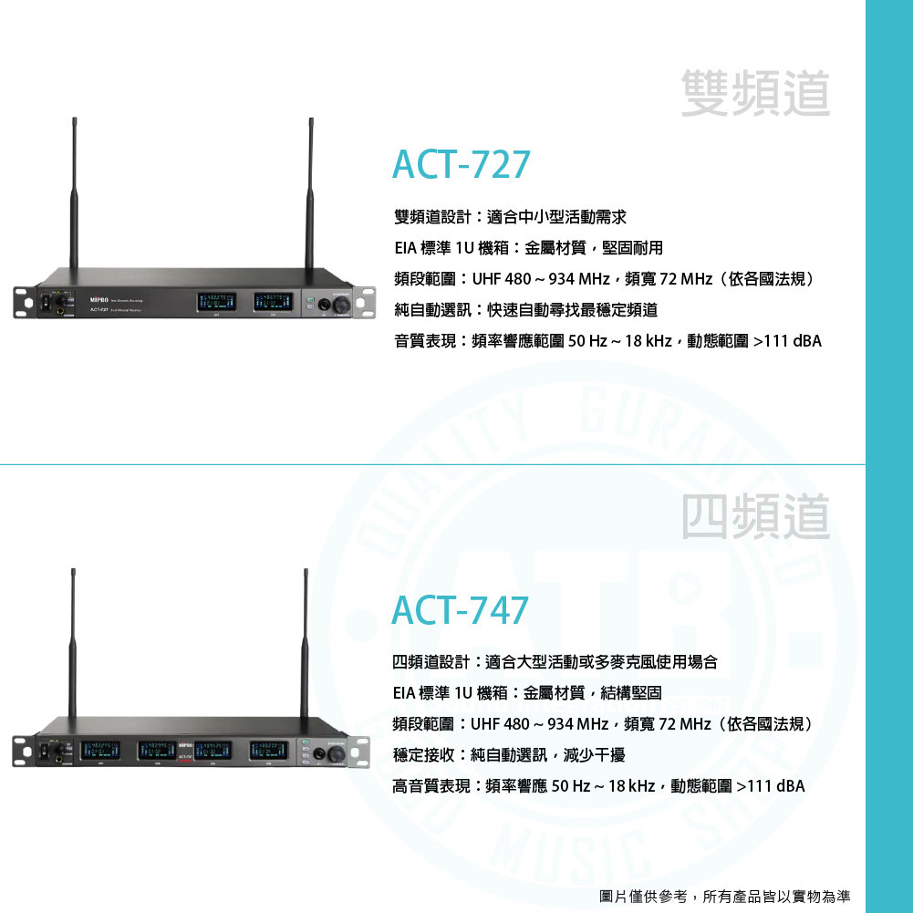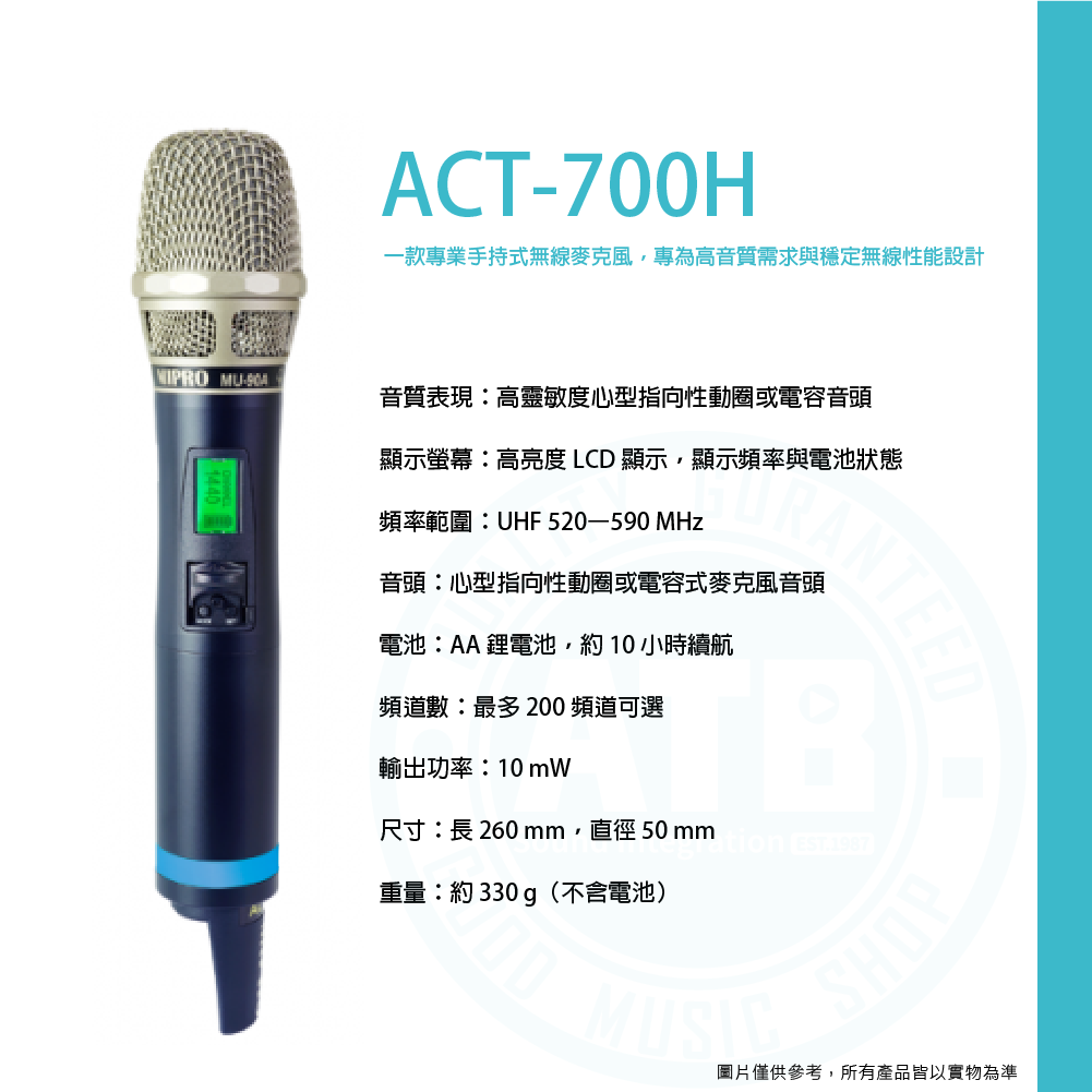 ◆標配ACT-700H手握式麥克風或ACT-700T佩戴式發射器