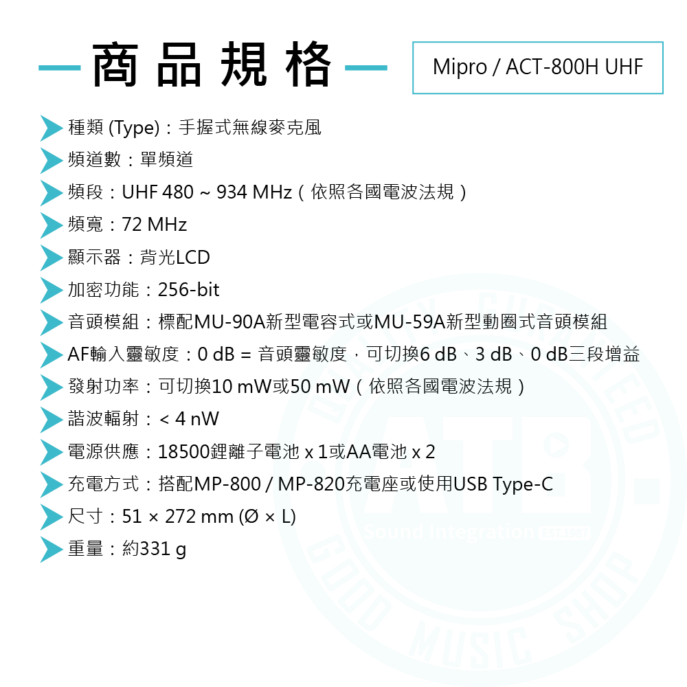◆裝配MIPRO各種新型電容式或動圈式音頭