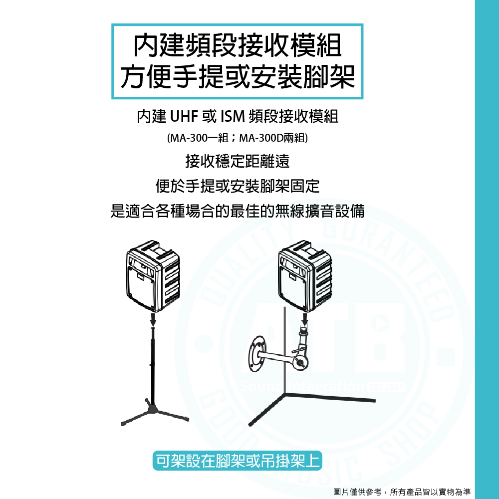 ◆ 便於手提或固定裝置,適合各種場合的最佳的無線擴音設備