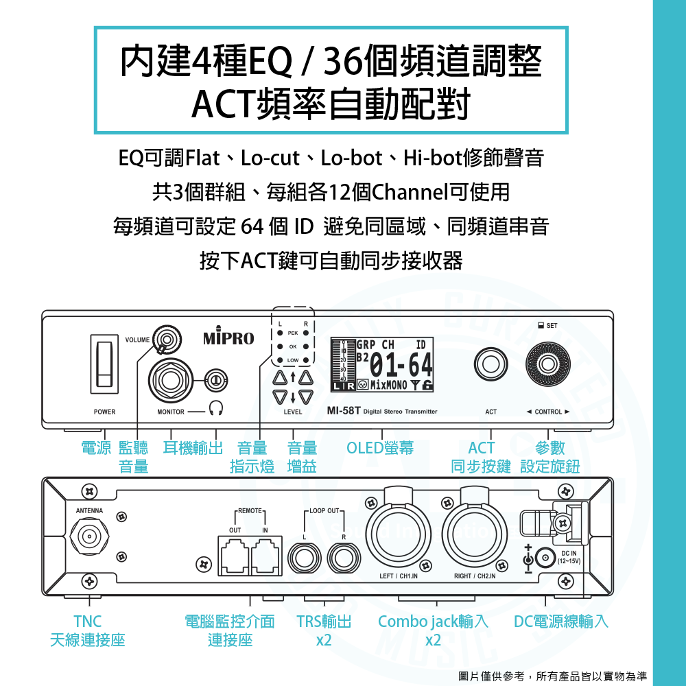 ◆ 可切換立體聲、聲道平衡、左右聲道混音