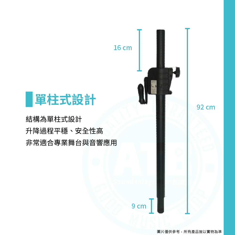 ◆ 結構為單柱式設計,升降過程平穩、安全性高