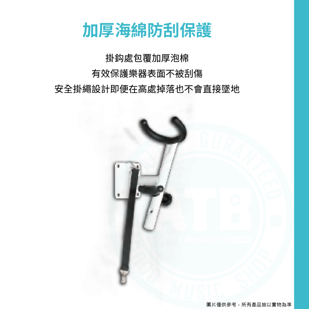 ◆ 別於落地架,掛壁式的置高設計可避免薩克斯風因碰撞而掉落損壞