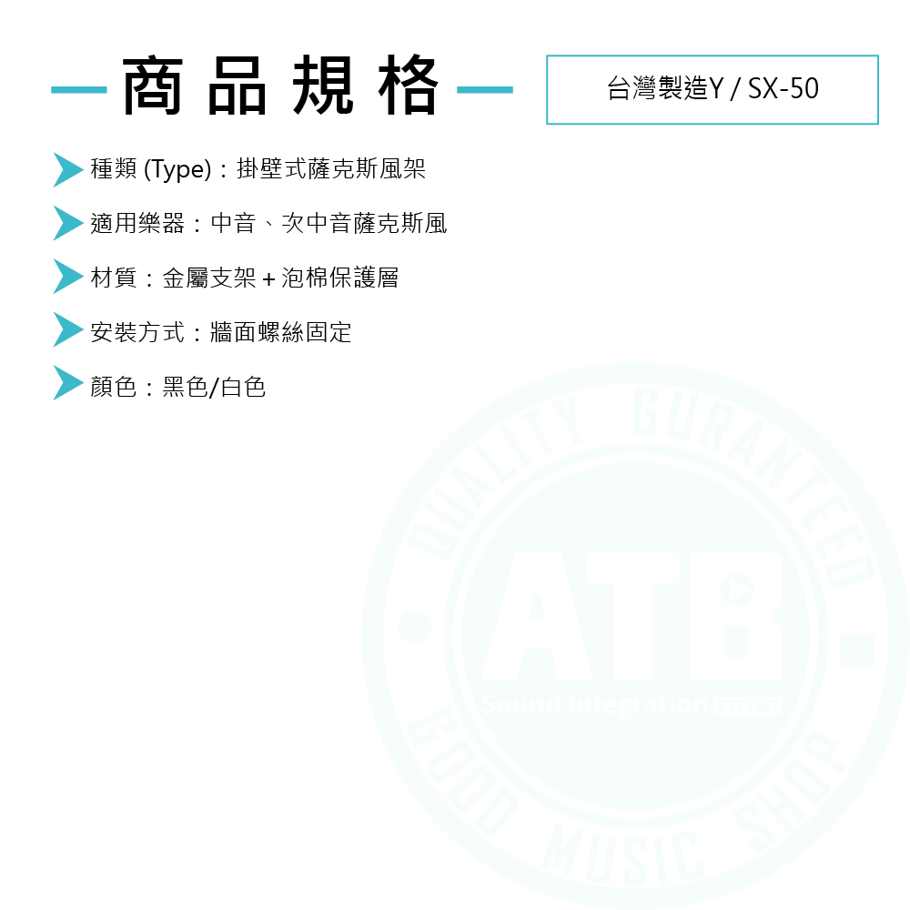 ◆ 採用螺絲固定於牆面,可承載一般中音、次中音薩克斯風