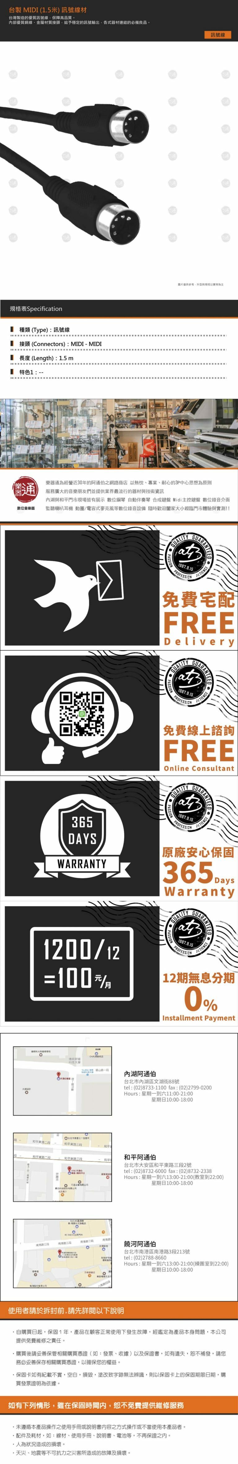 ◆ 台灣製造的優質MIDI線材,堅固結實品質保障