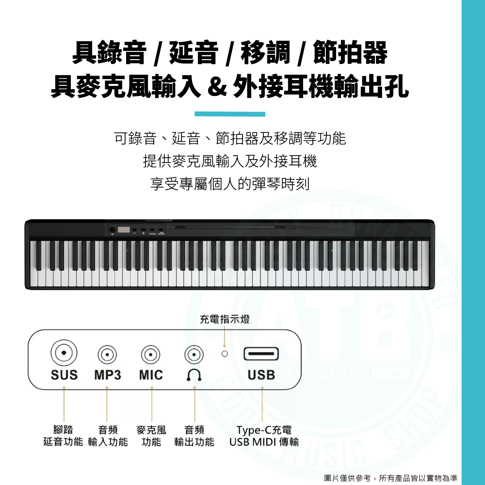 ◆ 具延音、移調、錄音、麥克風輸入及外接耳機等功能