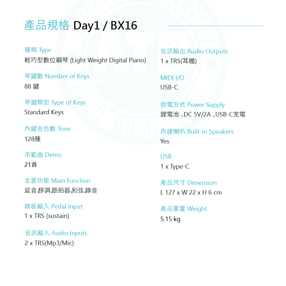 ◆ 128種音色、21首經典樂曲可播放