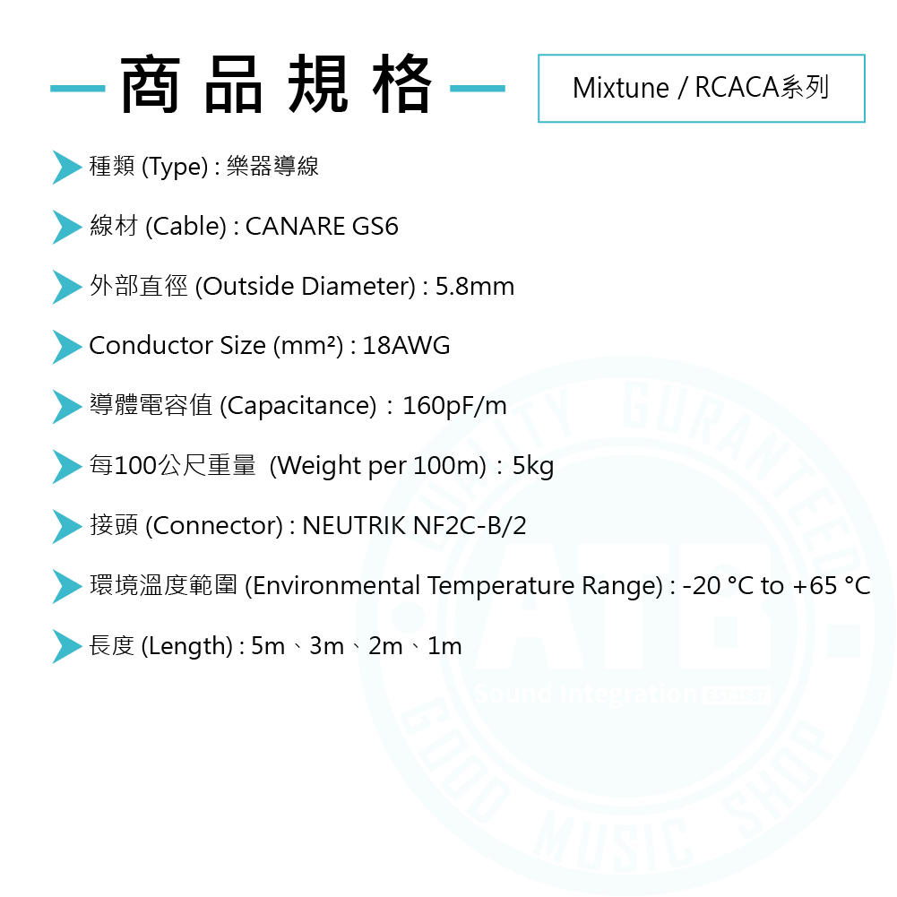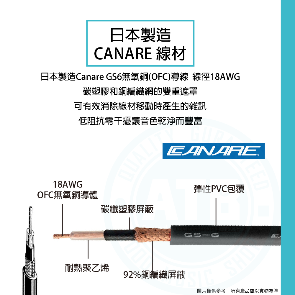 ◆ 日本製造Canare GS6無氧銅(OFC)導線具雙重遮罩,有效消除線材移動時產生的雜訊