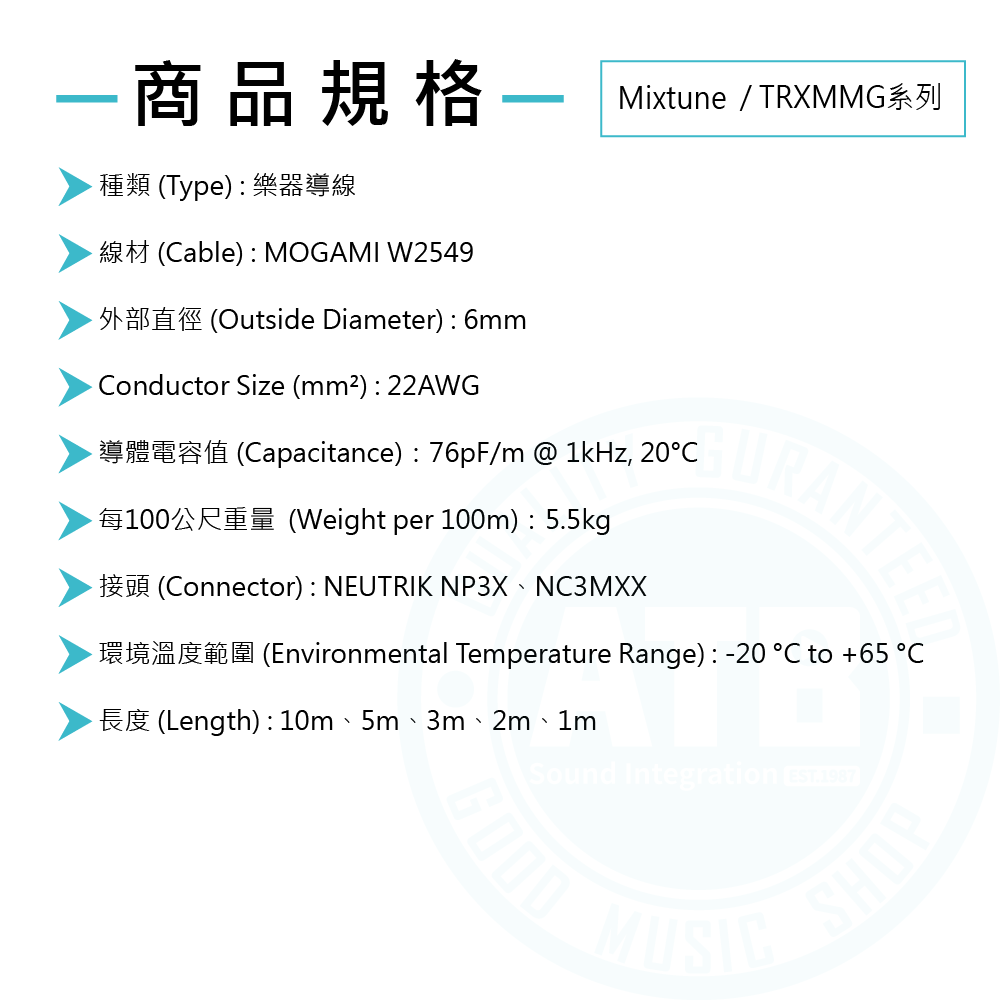 ◆ 錄音室等級MOGAMI 2549線材,推薦使用於需重點呈現高頻訊號或需較長導線時