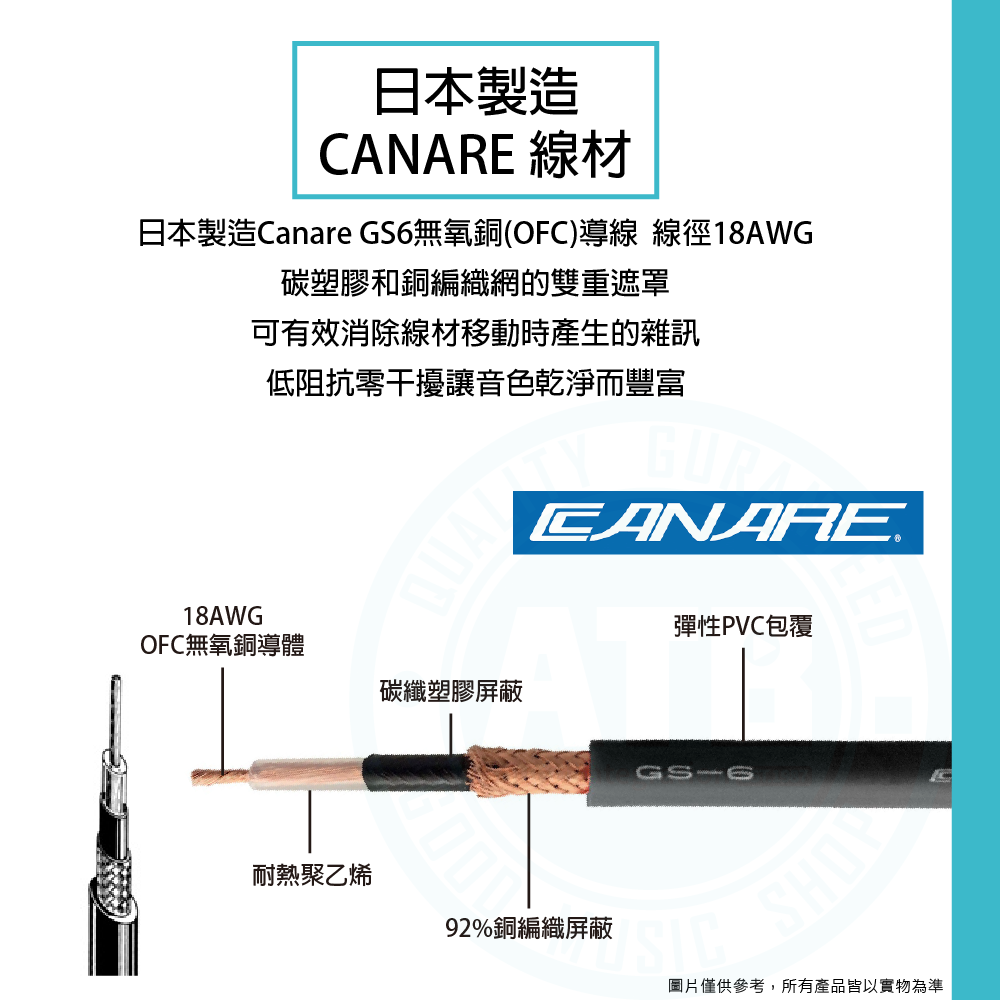 ◆ 日本製造Canare GS6無氧銅(OFC)導線具雙重遮罩,有效消除線材移動時產生的雜訊