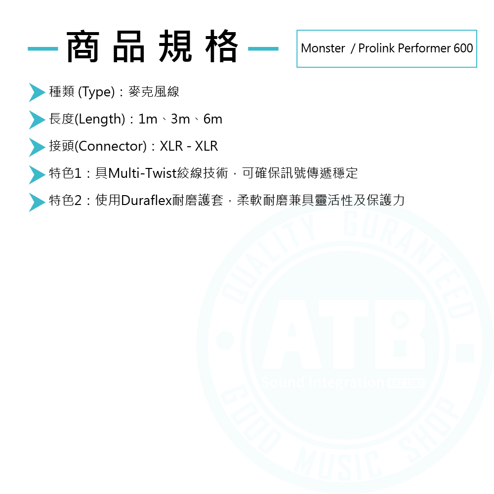 ◆ 演唱會/錄音室指定使用導線,享終生保固