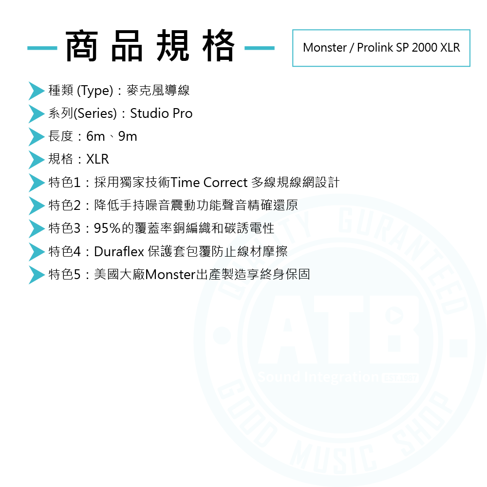 ◆演唱會/錄音室指定使用導線,享終生保固