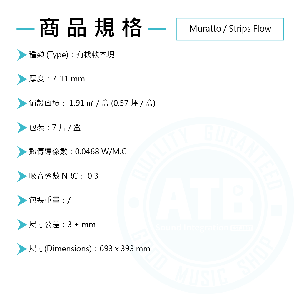 ◆ 一盒7 片 ,每片尺寸69.3 × 39.3 cm,面積 0.57 坪 / 盒