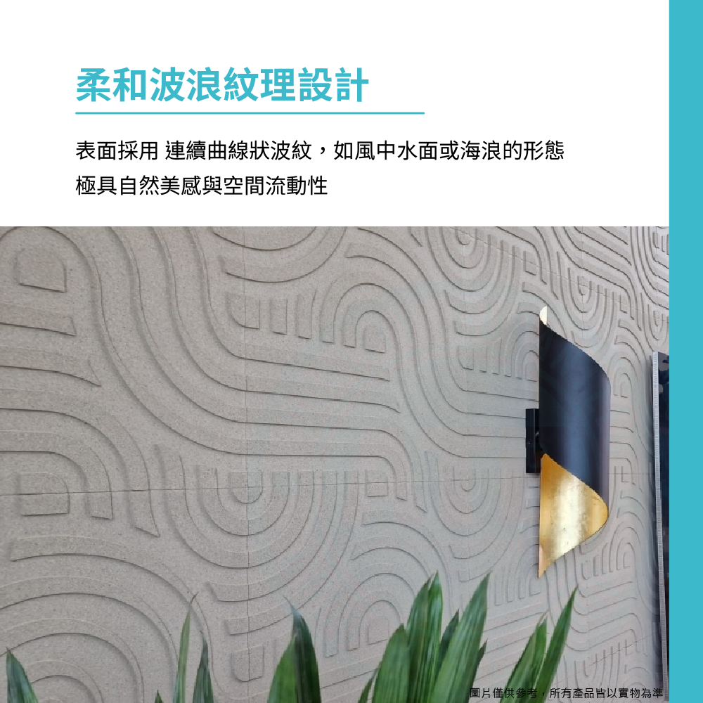 ◆ 整片表面呈現柔和波浪曲線紋理,帶來自然、靜謐與優雅的節奏感