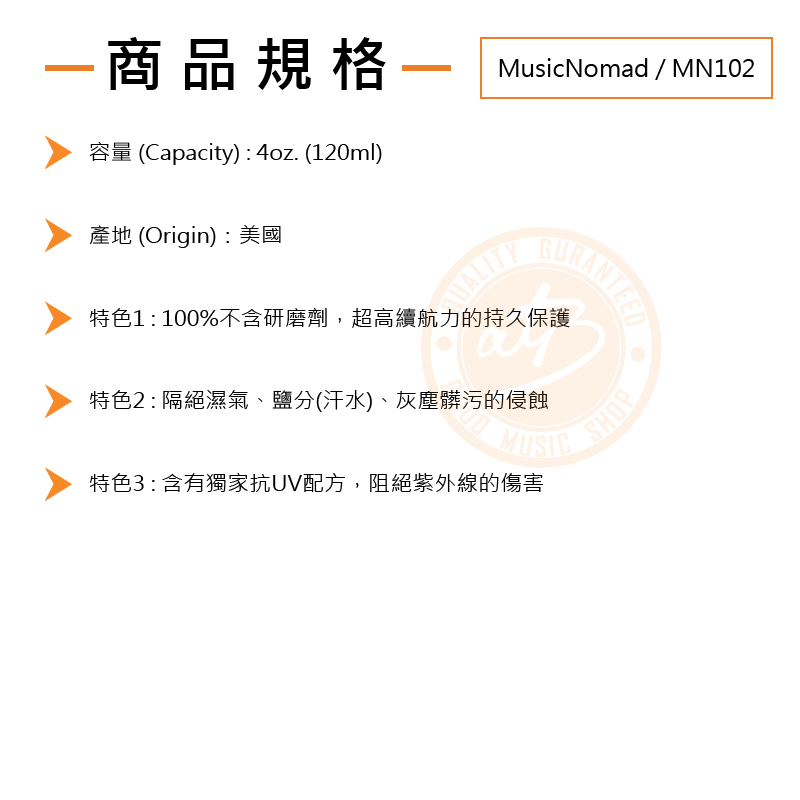 ◆不含重研磨劑,適用於任何吉他表面及各種漆面