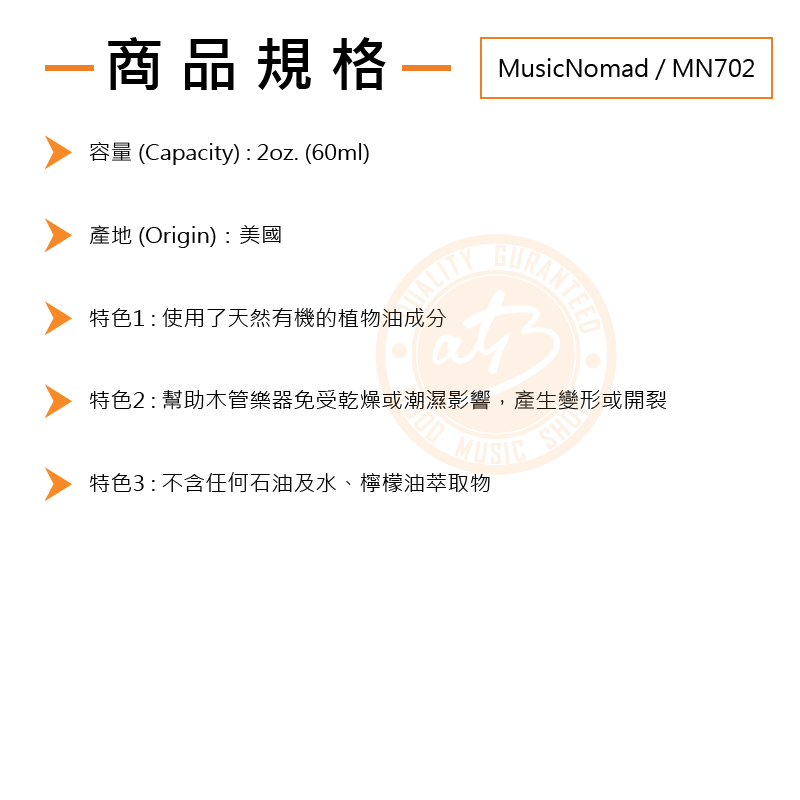 ◆幫助木管樂器免受乾燥或潮濕影響,產生變形或開裂