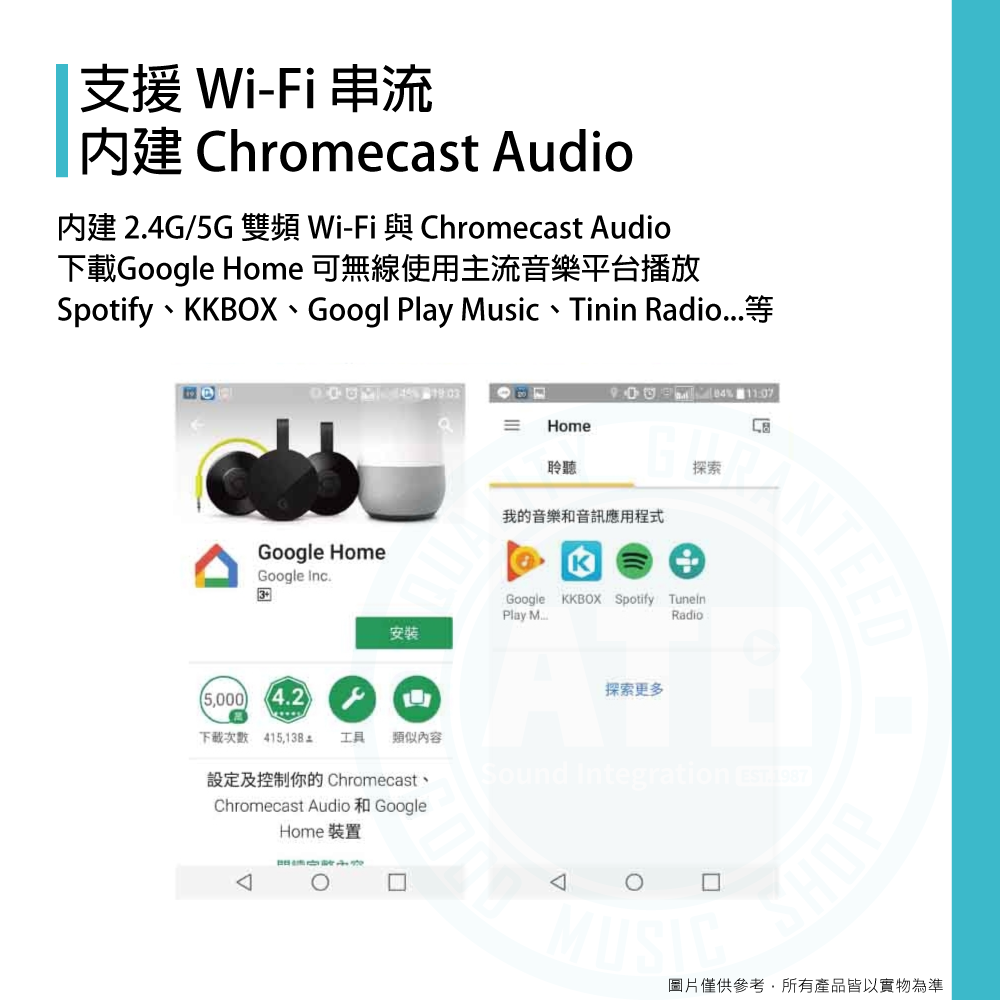◆內建 Google Chromecast,支援 KKBOX、Spotify 等主流串流平台